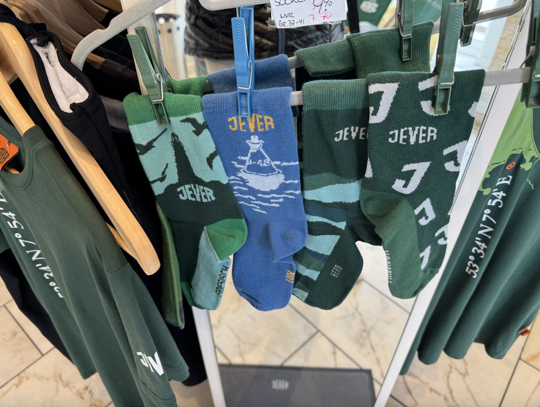 Vom Jever-Shop in der Schlachtstraße 2 wird man als Besucher magisch angezogen. Er vertritt das Motto „Hol Dir ein Stück Friesland nach Hause!“. Angeboten werden Bekleidung, Reisemitbringsel und Wohnaccessoires. Ich verließ den Shop allerdings ohnen einen Einkauf, obwohl ich das eine oder andere Mitbringsel spannend fand.