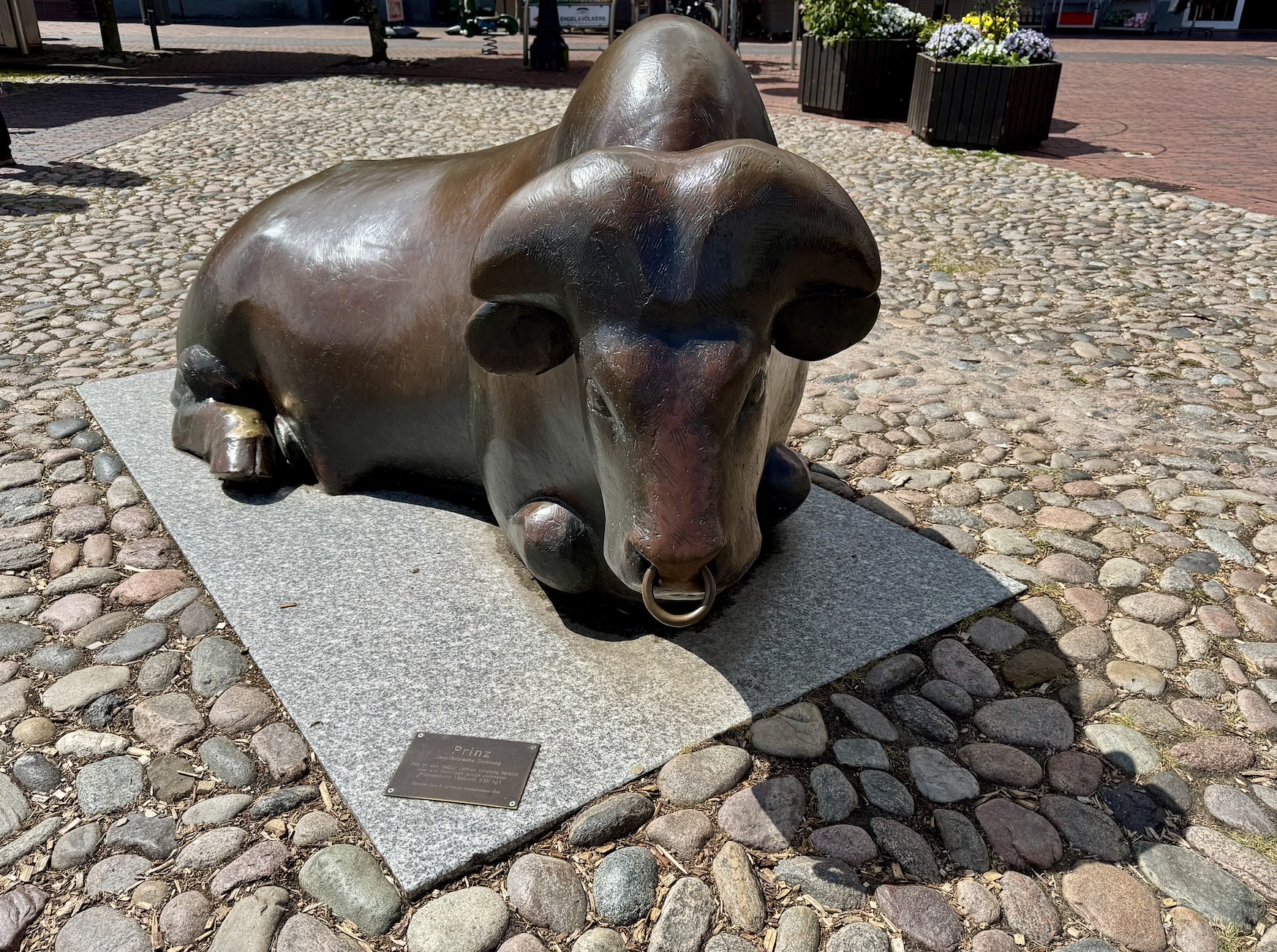 An die „Viehzeit“ erinnert heute Statue „Prinz“, ein mehrfach ausgezeichneter Prämienbulle vom Künstler Curt R. Lehmann aus Großenkneten von 1999.