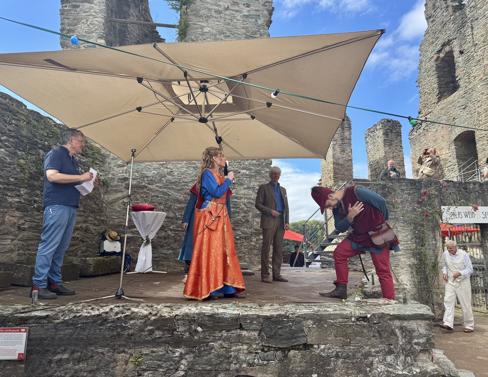Zu dem Festakt war auch das Burgfräulein Malva I. aus Königstein mit ihrer Hofdame Victoria angereist. Moderiert wurde der Akt durch den Vorsitzenden des Burgvereins, Ramon Olivella, der in der Stadt auch als Eppsteiner-Mundschenk und Weinhändler bekannt ist.