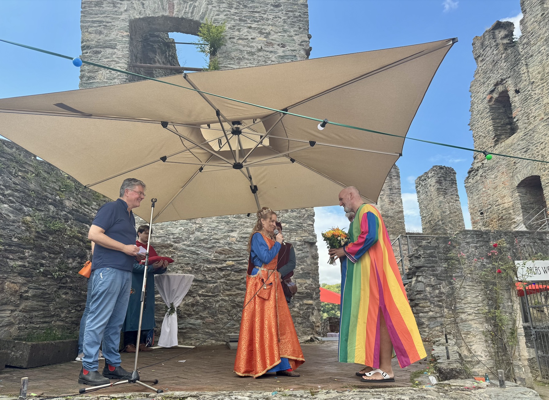 Nathalie beendete den Vorfall, in dem sie erklärte, dass in Eppstein das Burgfräulein sich ihren Junker selbst aussuche. Ihre Wahl fiel natürlich auf ihren Lebensgefährten Patrick Klein mit dem sie schon seit einigen Jahren im Burgverein und auch in der Eppsteiner Rotte aktiv ist.