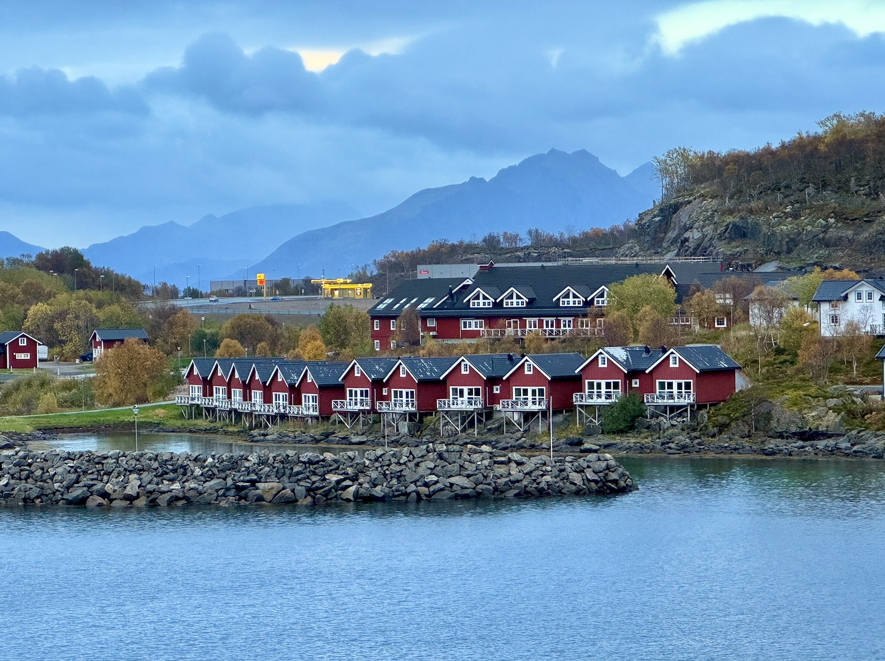 Der Hauptanziehungspunkt ist natürlich das aufwendige Hurtigruten-Museum, aber ich fand an dem doch ein wenig regenerischen Abend auch den Blick in den Ort schön.