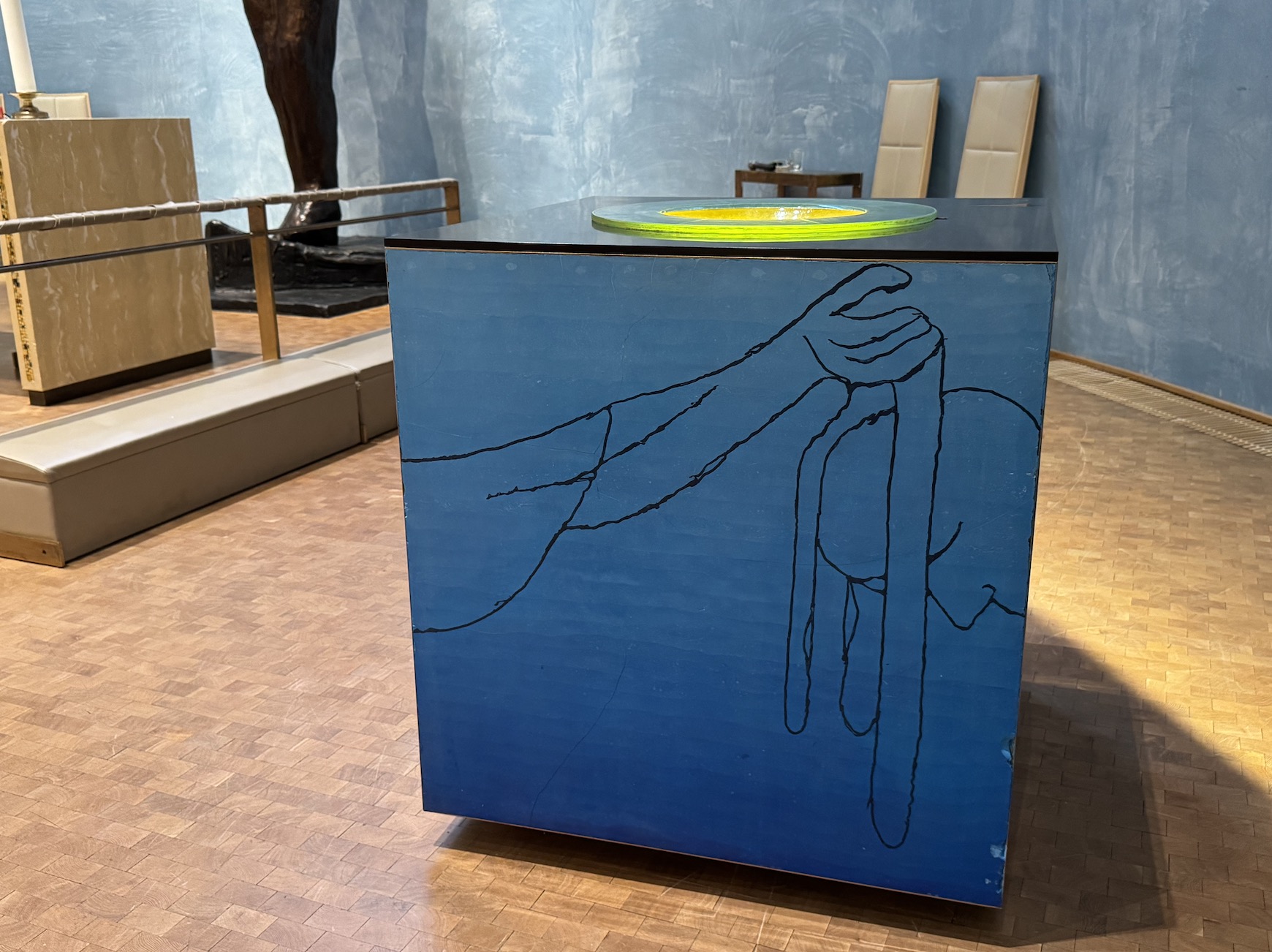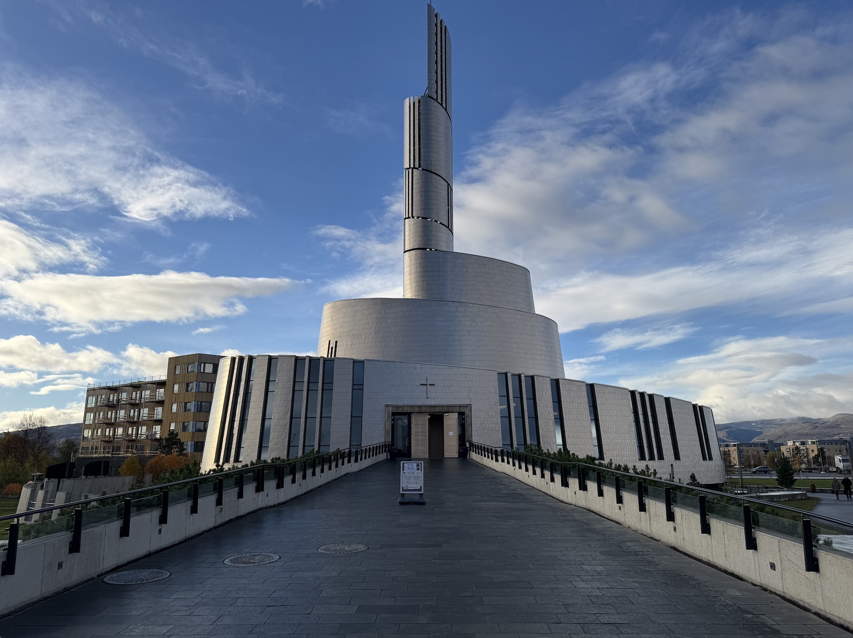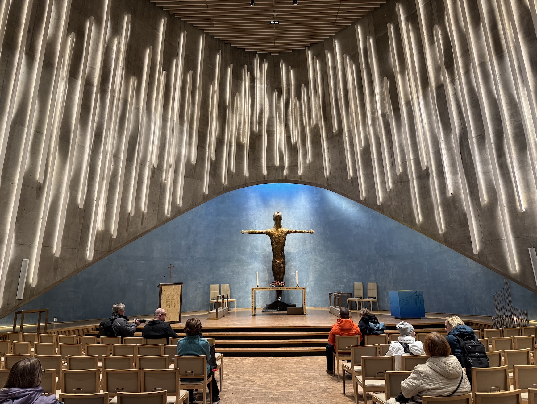 Die eindrucksvolle Nordlichtkathedrale in Alta habe ich sehr gern besucht. Sie wurden 2013 eingeweiht und ist komplett aus Beton. Der Altar mit der über 4 Meter hohen Christusfigur wird von Lichtern umspielt. Das Taufbecken besteht aus Marmorstuck und in der Mitte des Beckens ist der Stern von Bethlehem zu sehen.