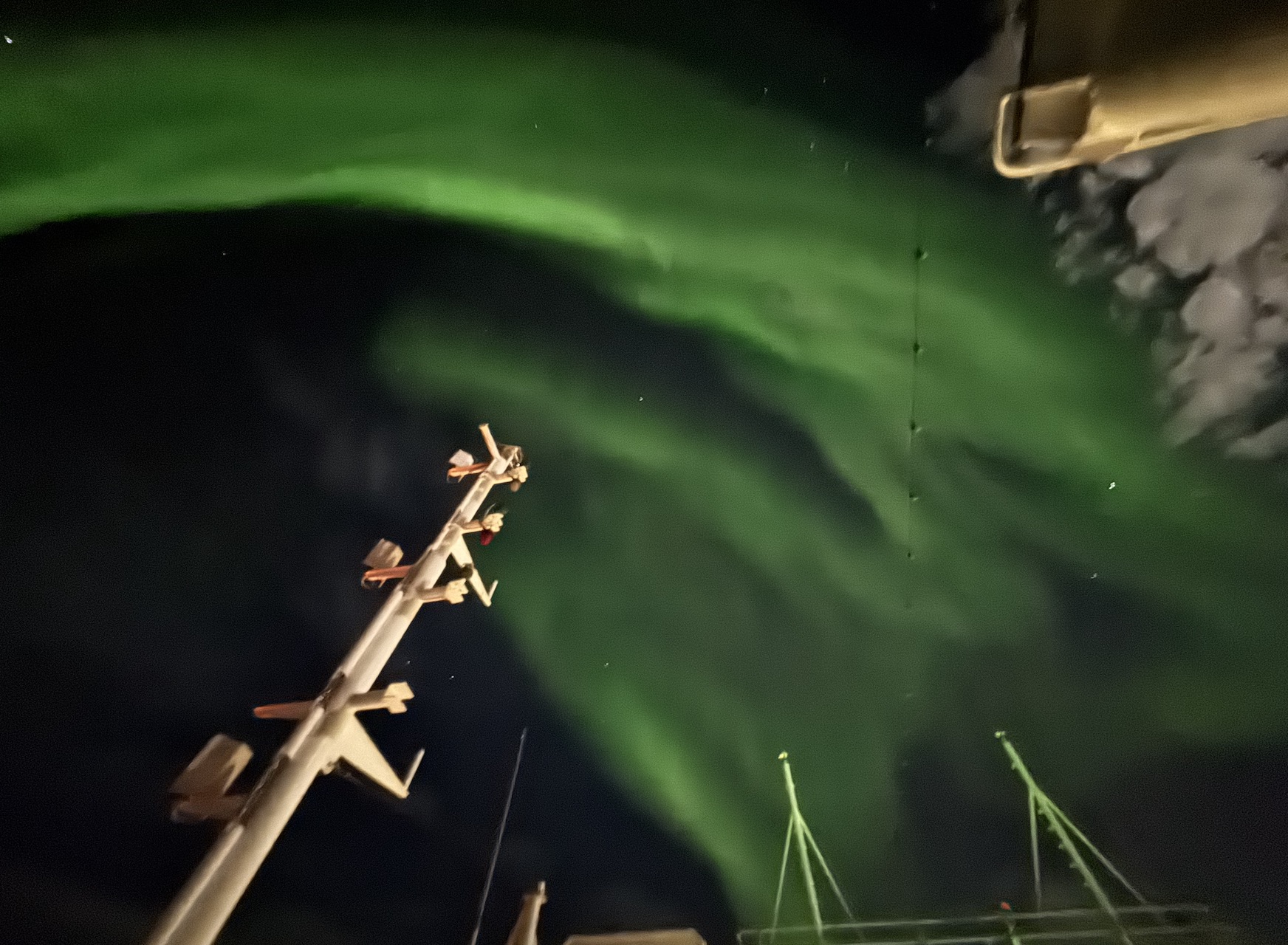 Für den 09. Oktober 2025 waren auf jeden Fall Polarlichter angesagt und kurz nach 22 Uhr ging es auch schon los. Nach einiger Zeit wechselte ich nach Deck 8 und es fühlte sich an, als ob das Licht auf das Schiff niederfällt. Wieder fühlte es sich magisch an. Dieses Mal waren die Lichter sogar bis 1 Uhr in der Nacht zu sehen und sie waren viel stärker, als beim ersten Mal. Außerdem konnte man sie mit bloßem Auge sehen.