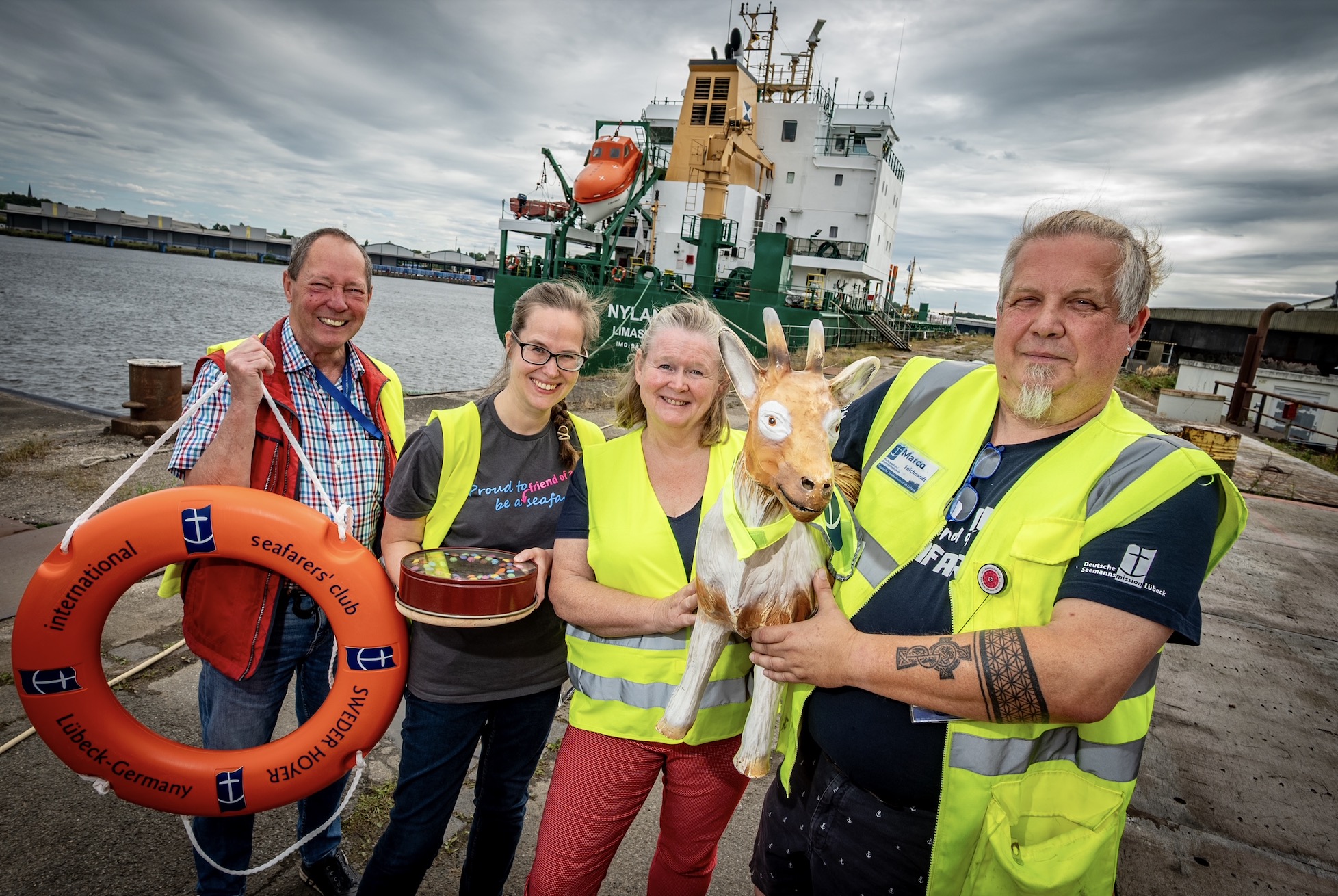 Was viele nicht wissen: Wir Ziegen fühlen uns nicht nur an Land und auf Bergen wohl, wir lieben auch das Wasser. Da ist Lübeck natürlich perfekt. Und Schwimmställe find ich richtzieg goat. Ich glaub, Martin hatte mir eine Z-Mail geschickt und gefragt, ob ich vorbeitraben wollte. Und: Ich wollte.