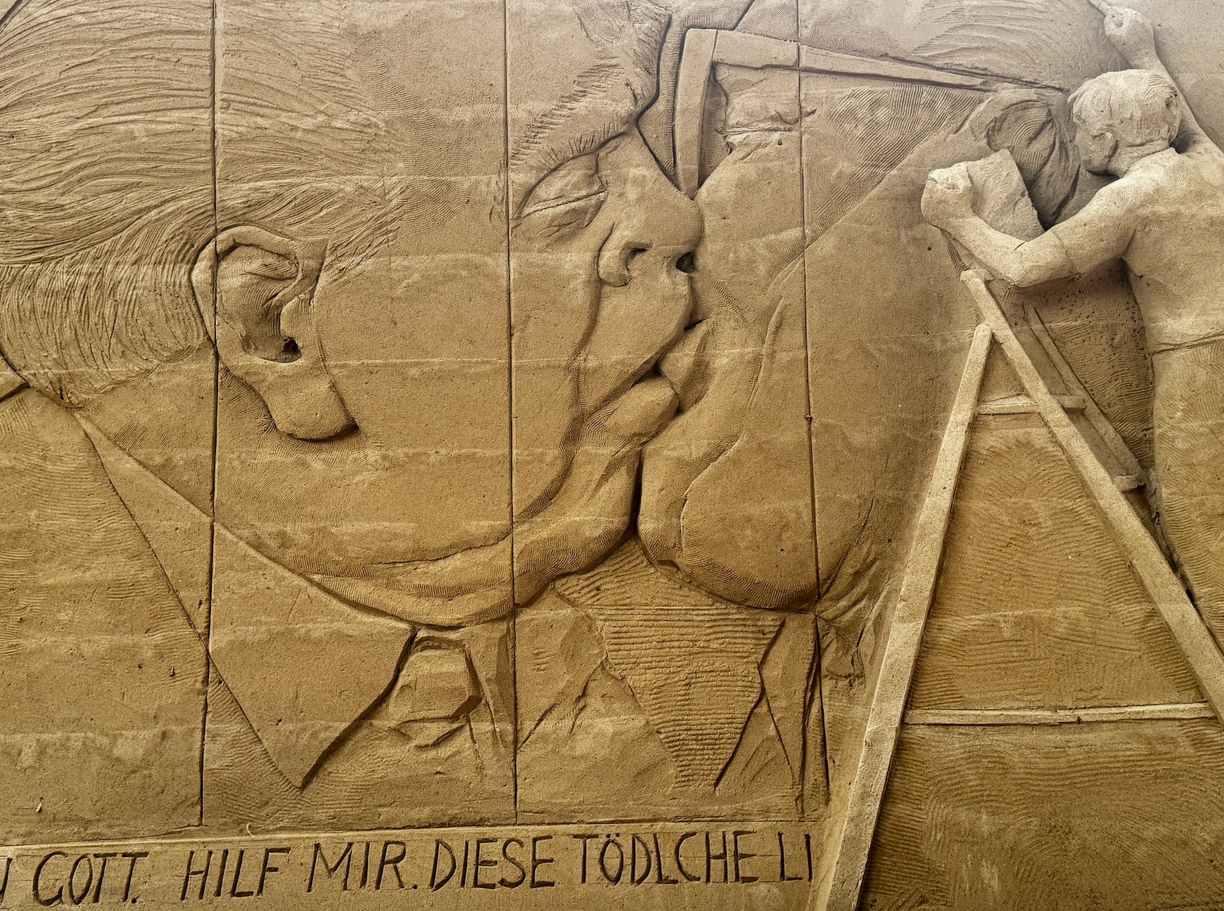 Auch der berühmte „Bruderkuss“ zwischen Leonid Breschnew (UdSSR) und Erich Honecker (DDR) vom 5. Oktober 1979 zum 30. Jahrestag der DDR ist in dieser Station dokumentiert. Es fehlt auch nicht der Satz des berühmten Mauergemäldes von Dimitri Wrubel: „Mein Gott, hilf mir, diese tödliche Liebe zu überleben.“