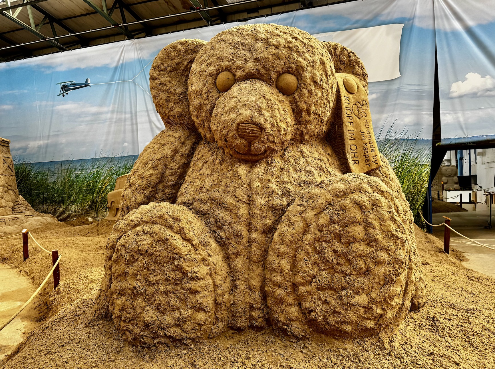 Sandwurm Sandy ist das Maskottchen der Ausstellung und wurde mehrfach in die Kunstwerke aus Sand eingearbeitet. Damit verbunden ist ein Suchspiel für Kinder, die so mehr Geduld in der Halle aufbringen. Ich habe mich sehr gefreut, Eventmanagerin Dani wieder zu treffen, die mich letztes Mal persönlich an den Pressetagen durch die Ausstellung geführt hatte. Dieses Mal war ich im Alleingang unterwegs. Ich kann die Sandskulpturenausstellung 2026 einfach nur wieder empfehlen.